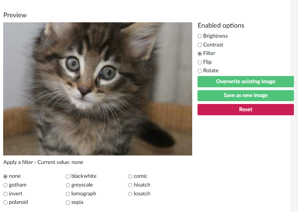 You can apply filter to images and/or rotate them inside the umbraco backoffice.
